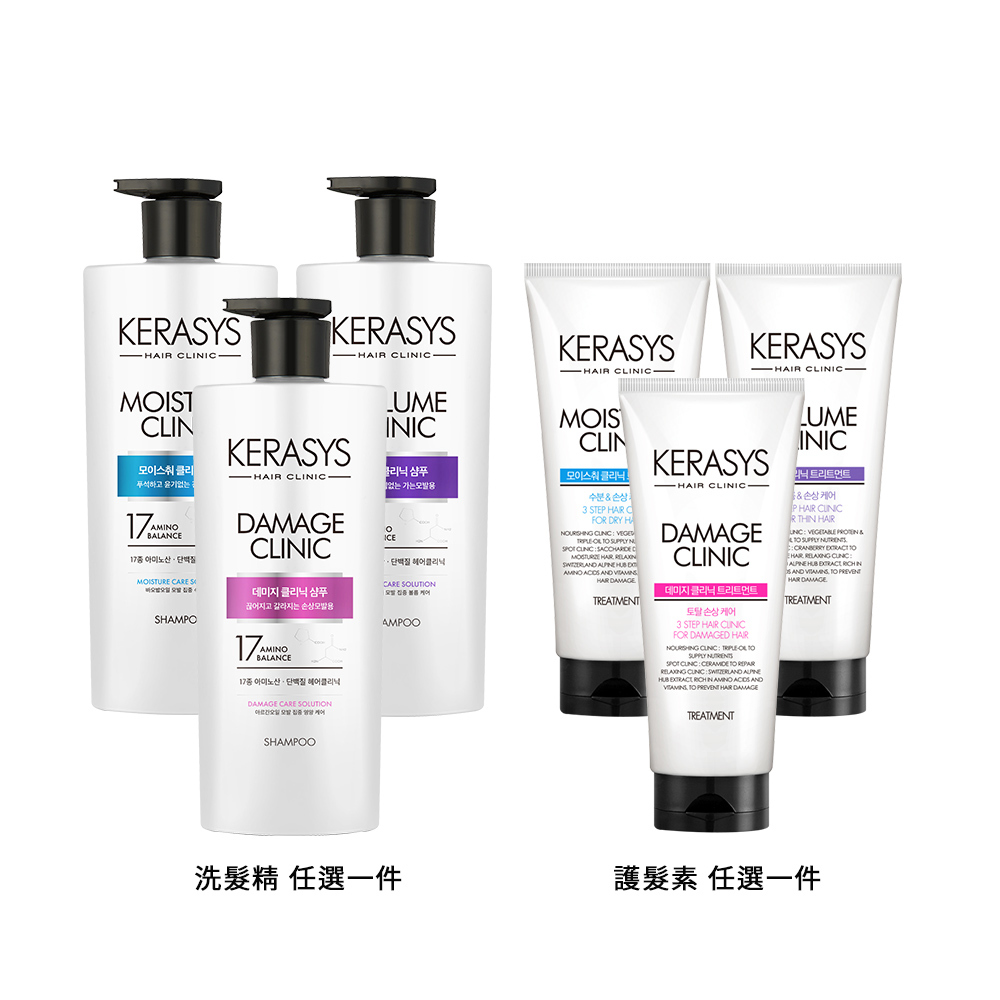 【KERASYS可瑞絲】胺基酸賦活奇蹟洗髮精-600ml【細軟扁塌髮/染燙受損髮/毛躁乾枯髮】任選1+可瑞絲植萃系抗損護髮素-300ml(毛躁髮/扁塌髮)任選1