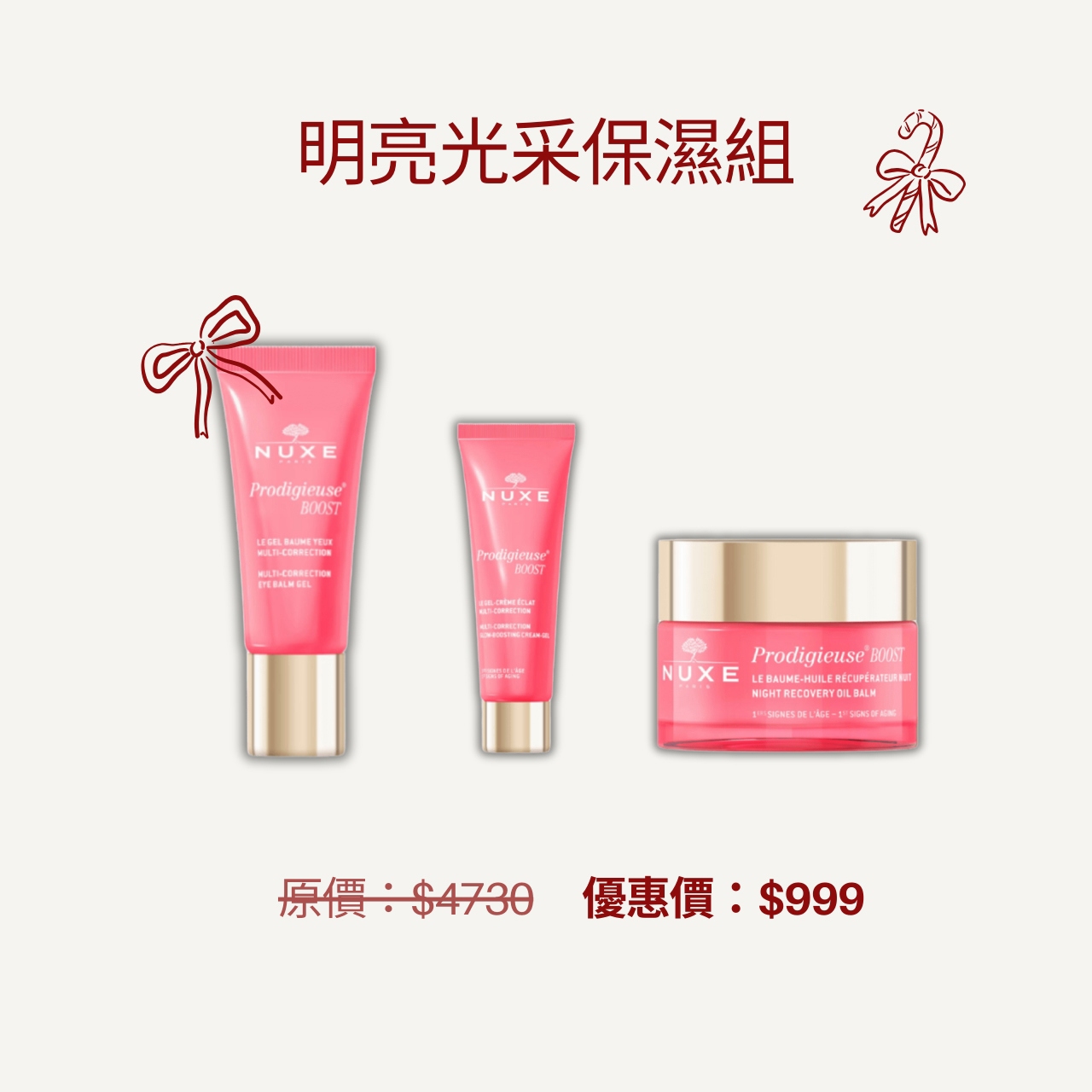 NUXE巴黎歐樹 粉漾明亮光采保濕組(亮顏乳液40ML+眼霜15ML+晚霜50ML) (最短效期至:2026/03/30)