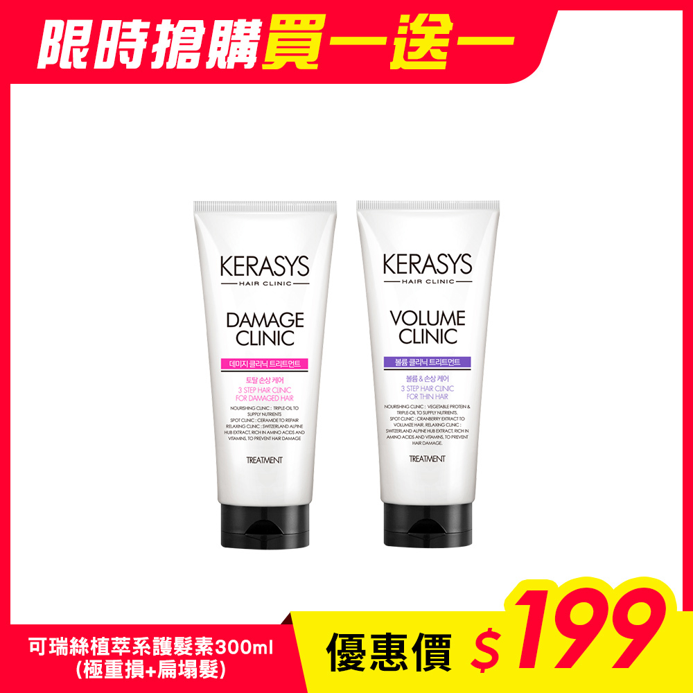 【限時搶購】可瑞絲植萃系抗損護髮素 300ml(極重損+扁塌髮)*買一送一_效期:2027/12