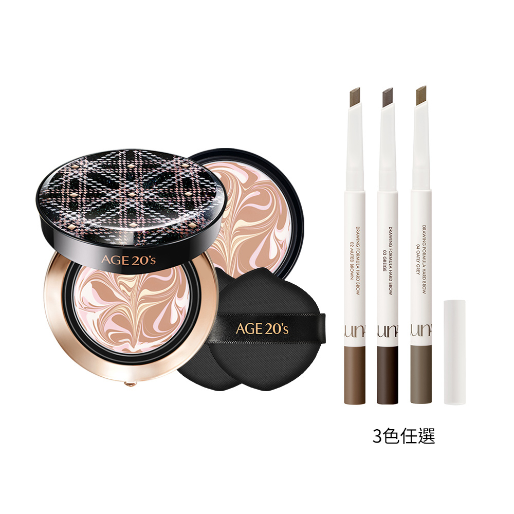 【AGE20S】鉑金奢華光綻爆水粉餅SPF50+/PA++++ (BE-21)亮白色(1空殼+2粉蕊)+【LUNA】細緻描繪柔霧眉筆(02淺棕色/03灰棕色/04燕麥灰)任選1入
